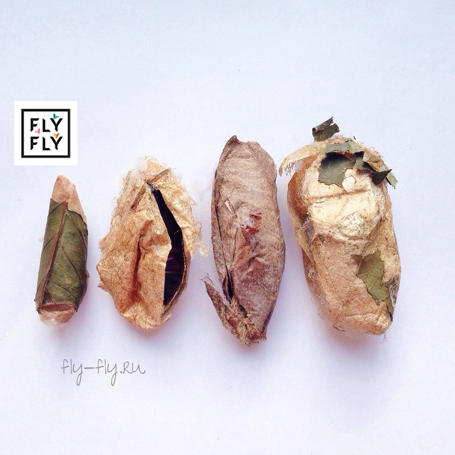 Куколки бабочек всегда приходят в своих естественных коконах из грубого шелка. Его гусеница плетет из собственного секрета, выделяемого железами, зачастую дополнительно обернувшись листиком то ли для прочности, то ли для дополнительной конспирации. Но мы все-таки думаем, что гусеница немного торопится и хочет поскорее закончить со своим домиком, чтобы приблизить момент перерождения в бабочку?