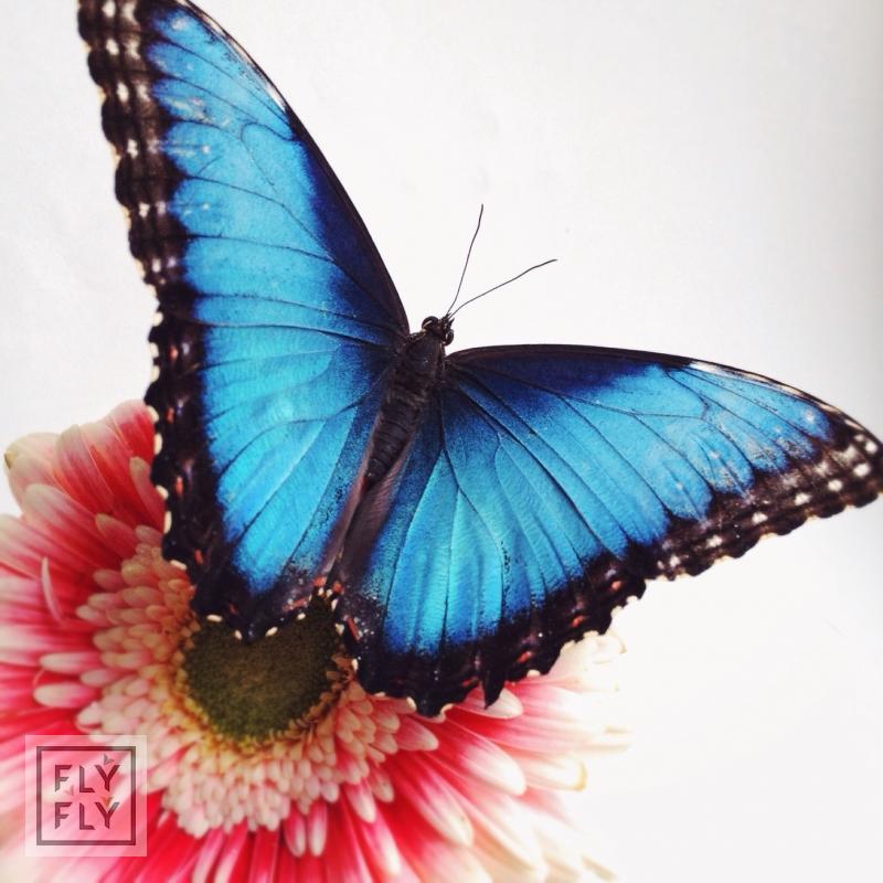 Живая бабочка Морфо Пелеида (Morpho peleides) родом из солнечной Коста-Рики. Одна из самых больших и ярких наших бабочек: крылышки у крылатки достигают 16 см в размахе, а на солнце переливаются от небесно-голубого до серебряно-металлического цвета. Такой оптический эффект позволяет бабочке в полёте ослеплять преследователя бликами солнечного света и сбивать с толку хищника. Живая бабочка Морфо питается сладким сиропом или сочными фруктами, обожает апельсины и высокую влажность. Как ухаживать за живыми бабочками смотрите в нашем блоге :)