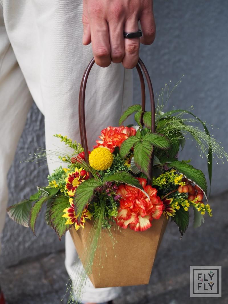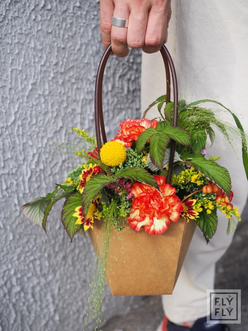 Яркая осенняя композиция в крафтовой сумочке.
